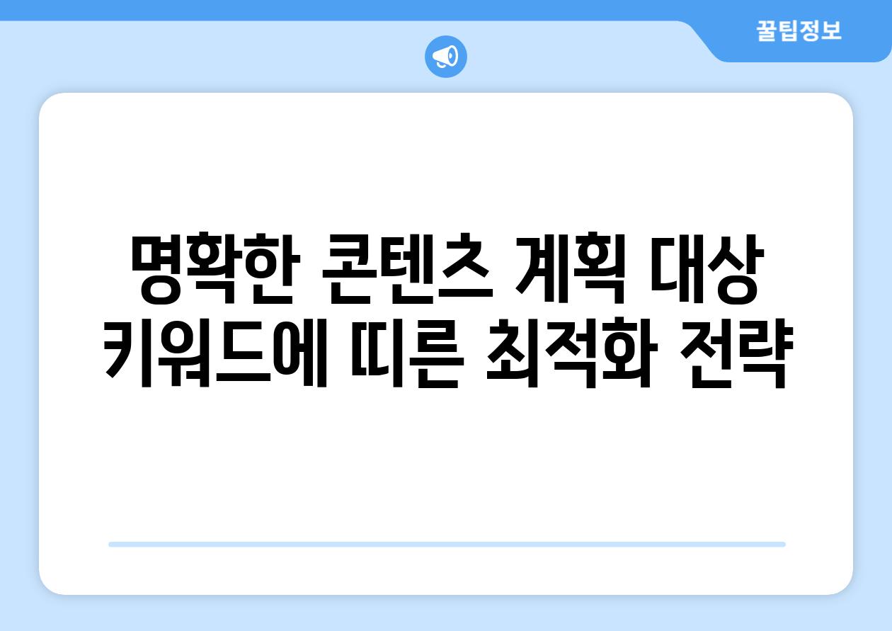 | 명확한 콘텐츠 계획 대상 키워드에 띠른 최적화 전략 |