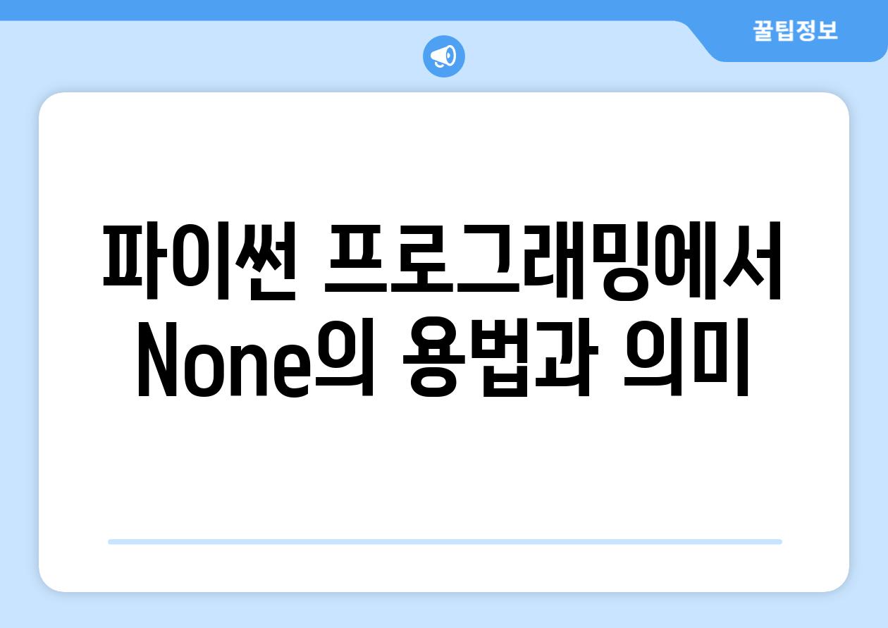 | 파이썬 프로그래밍에서 "None"의 용법과 의미 |